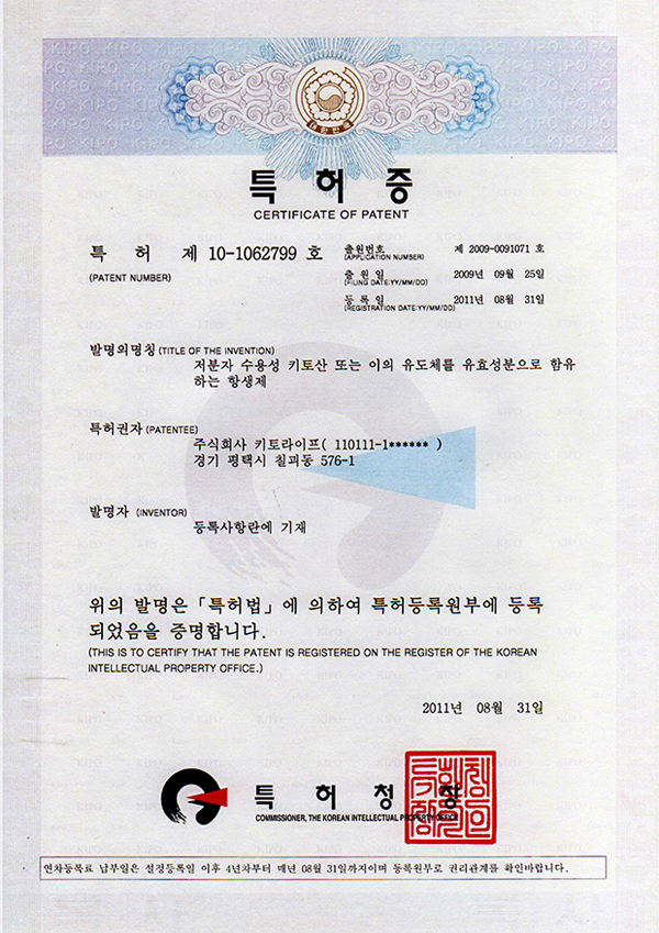 À̵é Á¦Ç°Àº 98³â °úÇбâ¼úºÎ·ÎºÎÅÍ KT ¸¶Å© ÀÎÁõÀ» ¹ÞÀº »ý¸® Ȱ¼ºÀÌ ³ôÀº ŰÅä¿Ã¸®°í´çÀÇ Á¦Á¶±â¼ú¿¡ »õ·Î¿î ¿° Á¦°Å ±â¼úÀ» °áÇÕÇØ ±âÁ¸ ½Äǰ¿ëÀÇ Å°Åä¿Ã¸®°í´ç¿¡¼ »ê¼º¿°À» Á¦°ÅÇÔÀ¸·Î½á ÇÔ·®°ú ¼øµµ¸¦ ´ëÆø ²ø¾î¿Ã¸° °ÍÀ¸·Î ½Äǰ ºÐ¾ß»Ó¸¸ ¾Æ´Ï¶ó ÀǾàǰ ºÐ¾ß¿¡±îÁö Ä¿´Ù¶õ ÀüȯÁ¡À» ¸¶·ÃÇÒ °ÍÀ¸·Î ±â´ëµÇ°í ÀÖ½À´Ï´Ù.